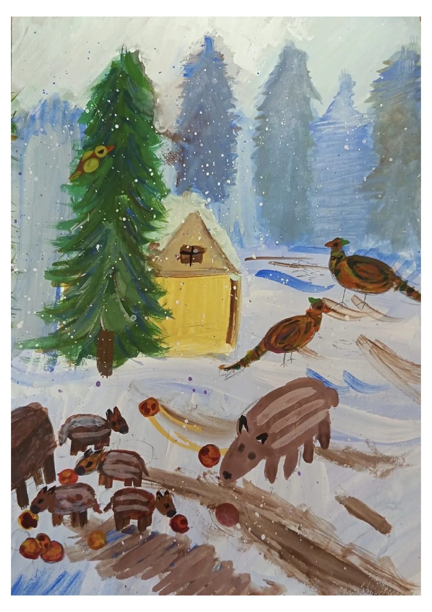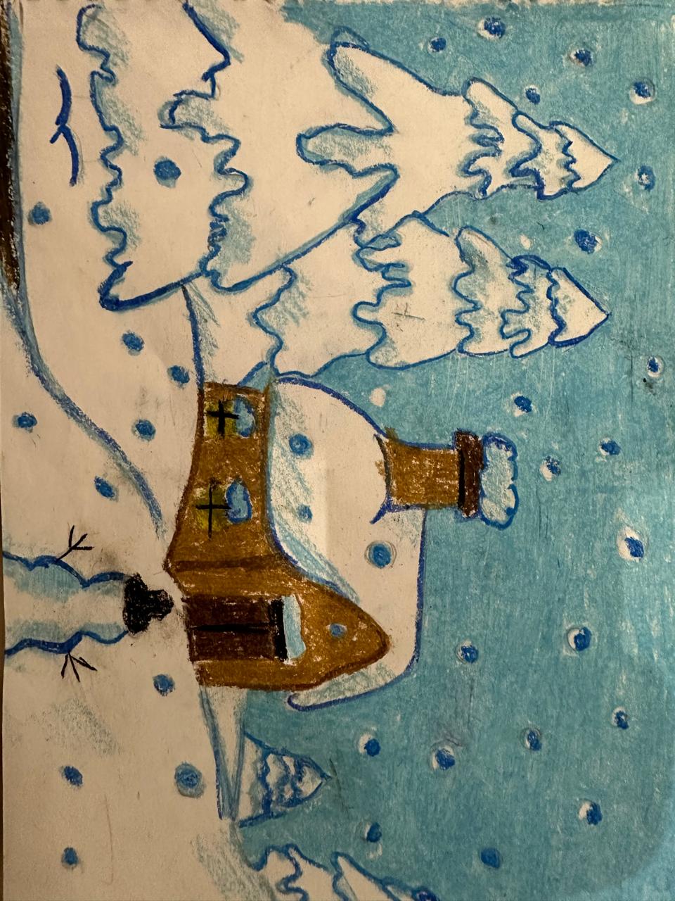 Войдите, чтобы проголосоватьРабота Аделина Мартыненко, 4 класс дом в зимнем лесу 07 апр. 2024
