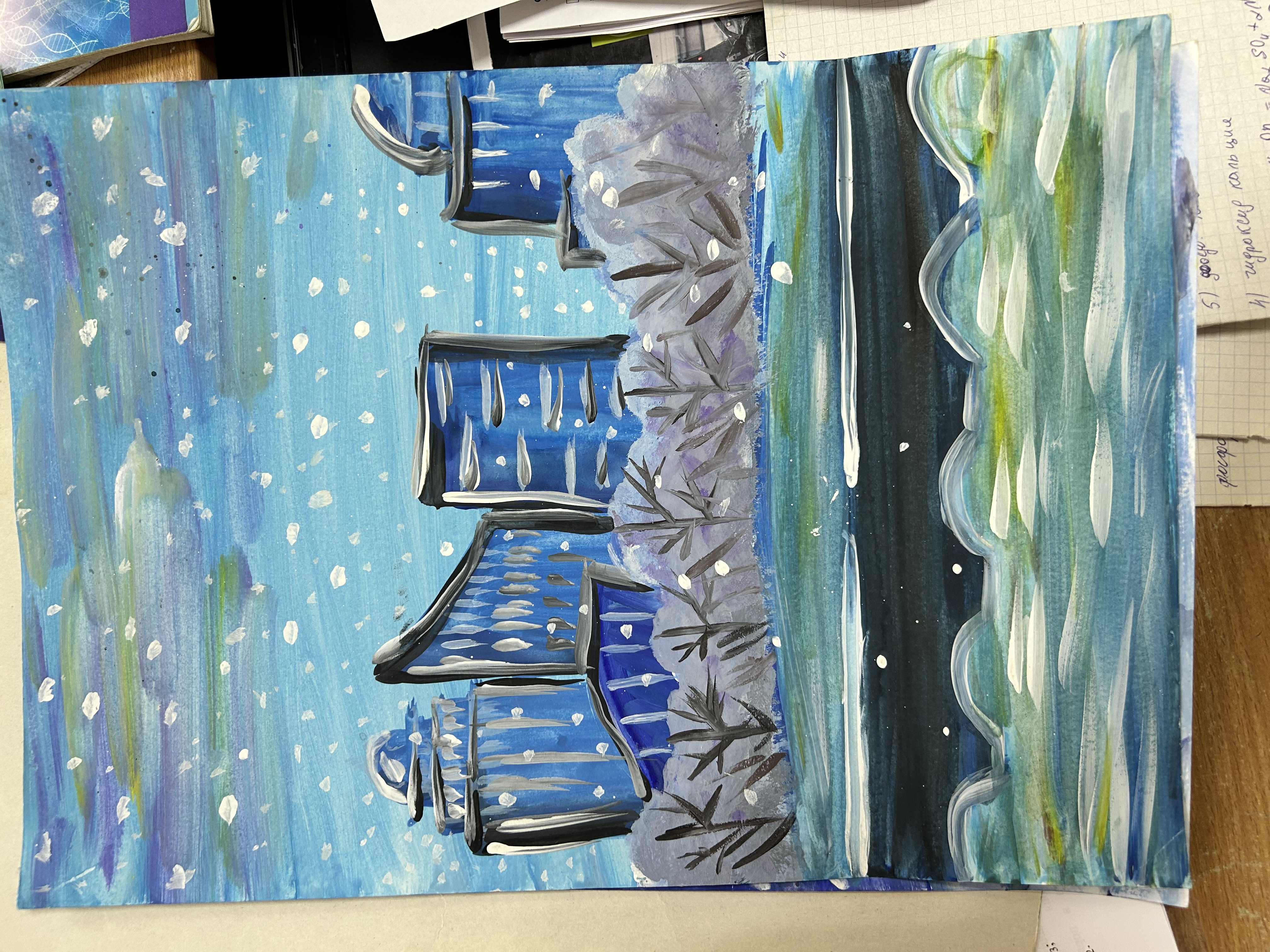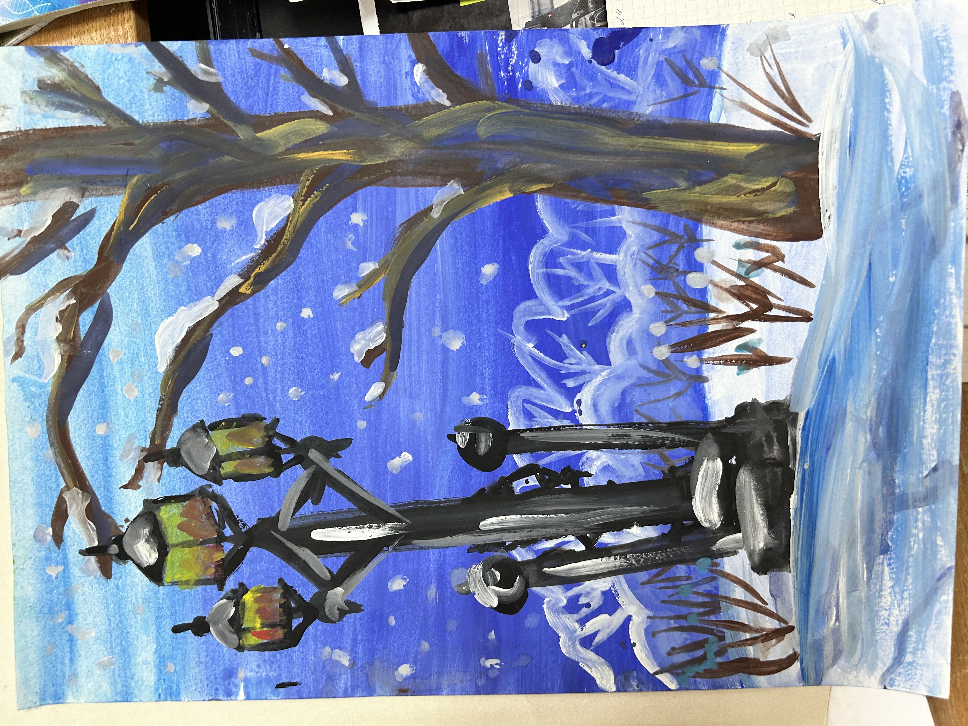 Работа Ярославы Остравлянчик, 5 класс Новогодний пейзаж 01 февр. 2024