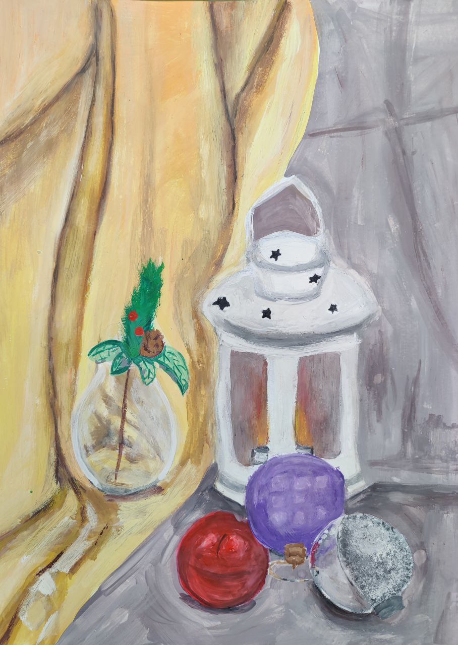 Войдите, чтобы проголосоватьРабота Киры Звонковой, 8 класс Новогодний натюрморт 24 марта 2025