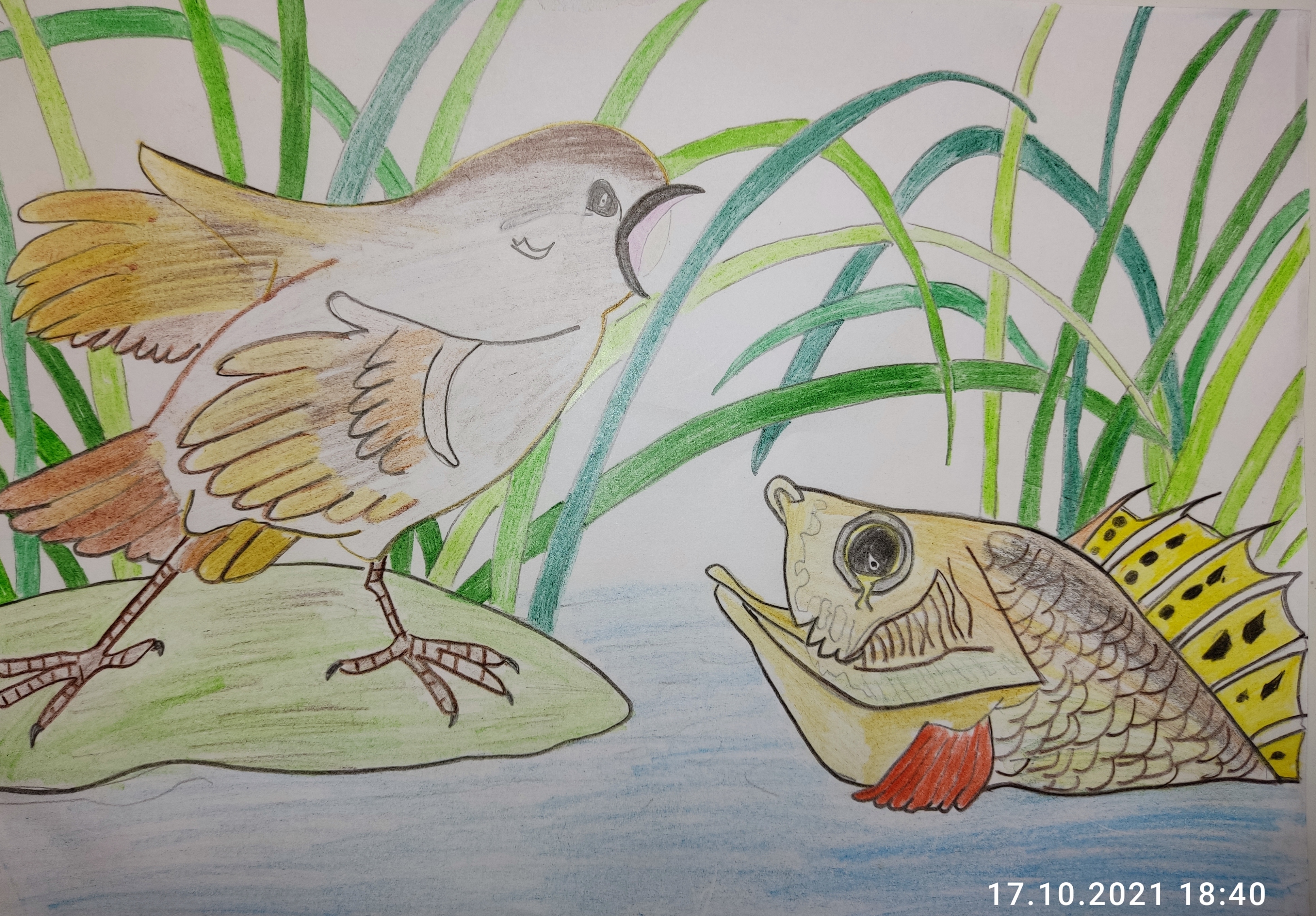 Войдите, чтобы проголосоватьРабота Матвея Рябко, 5 класс Рисунок к Сказке про Воробья Воробеича, Ерша Ершовича и веселого трубочиста Яшу (авт. Д.Мамин-Си... 17 окт. 2021