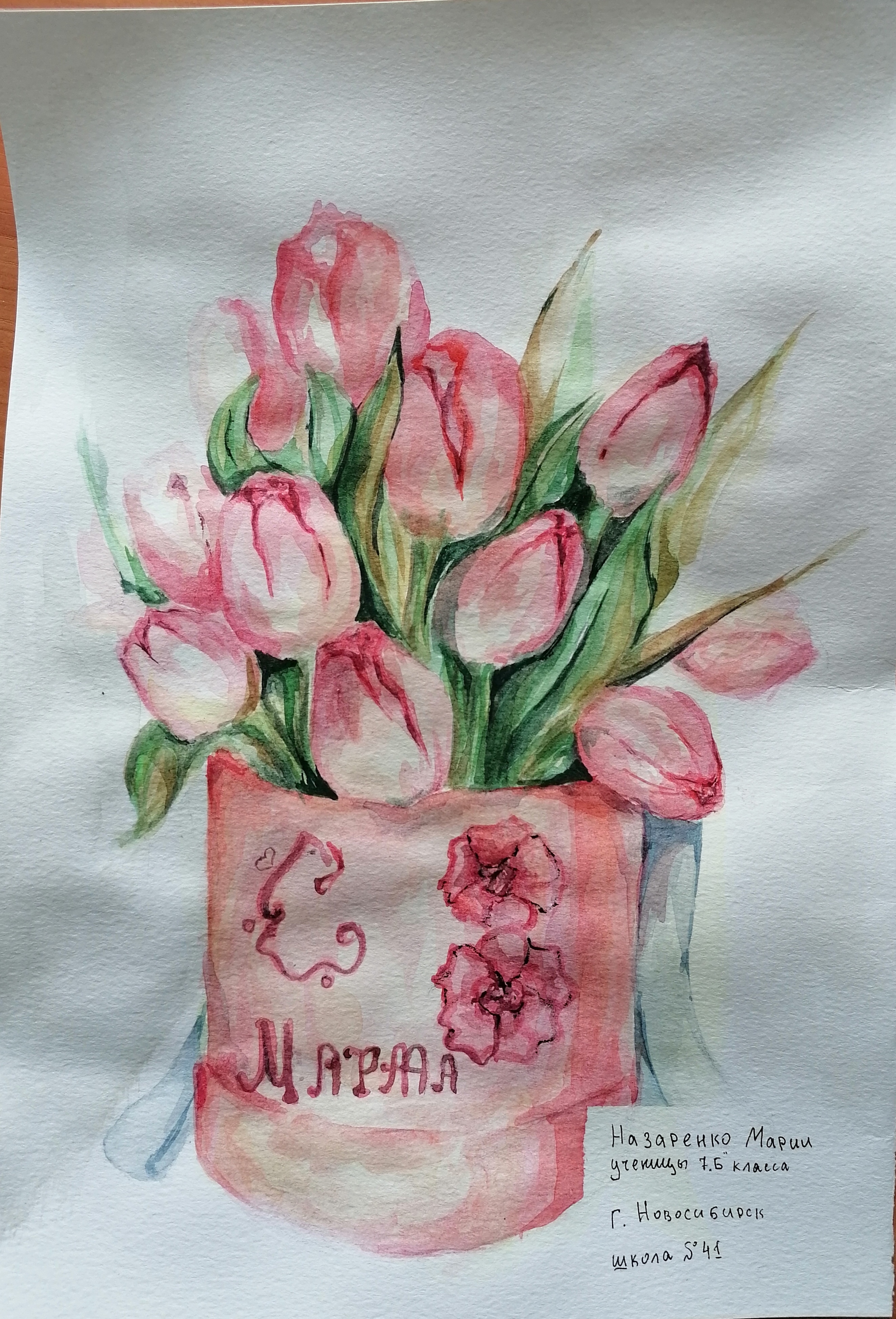 Работа Арина Пожар, 1 класс " Цветы для мамочки" 08 марта 2022