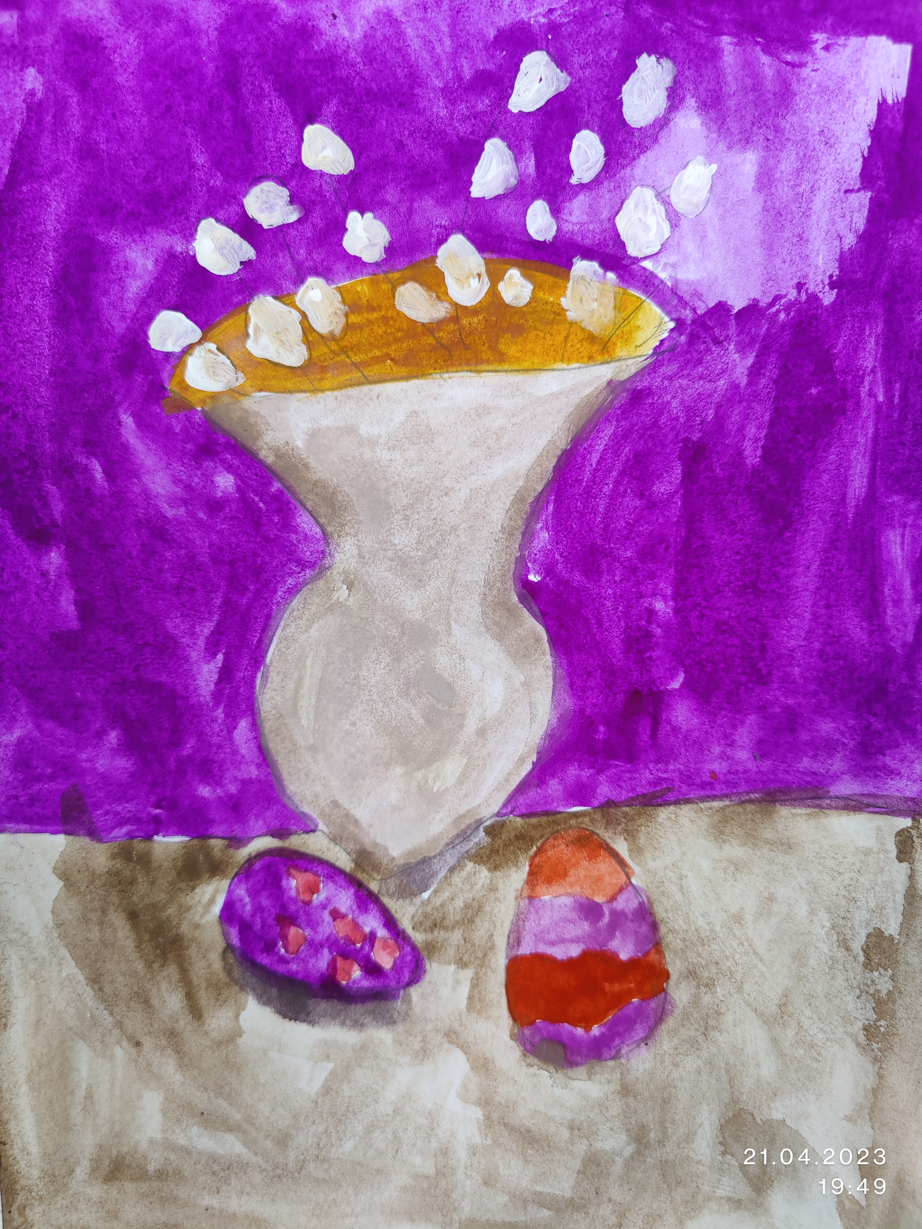 Войдите, чтобы проголосоватьРабота Анастасии Овсяниковой, 1 класс Пасхальный натюрморт 08 июня 2023